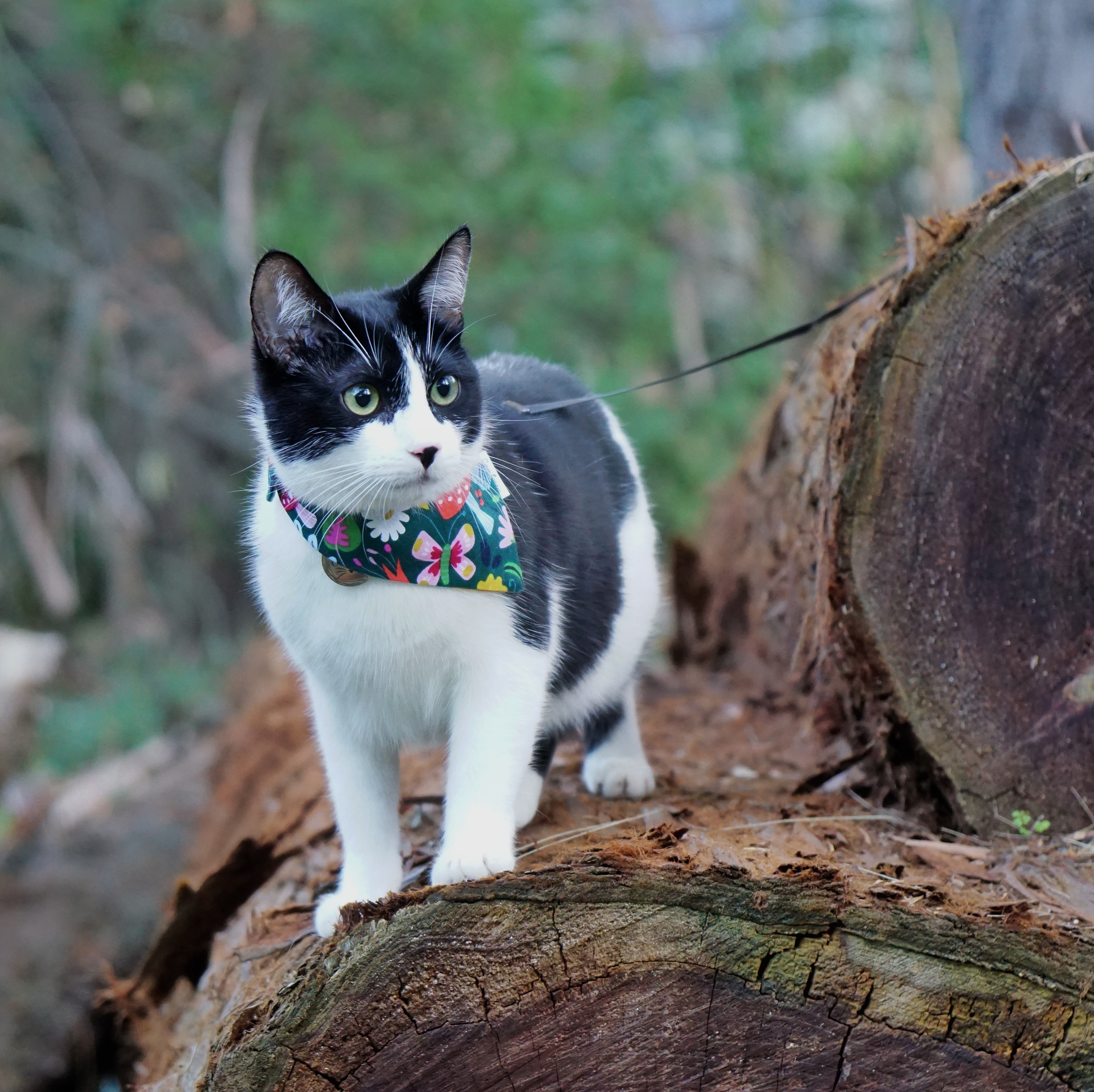 She is a lil’ adventurer and loves exploring outside. To make sure she can explore safely, she is leash and harness trained. I don’t let her free roam because that would just make me anxious and I don’t trust drivers to be careful on the street.