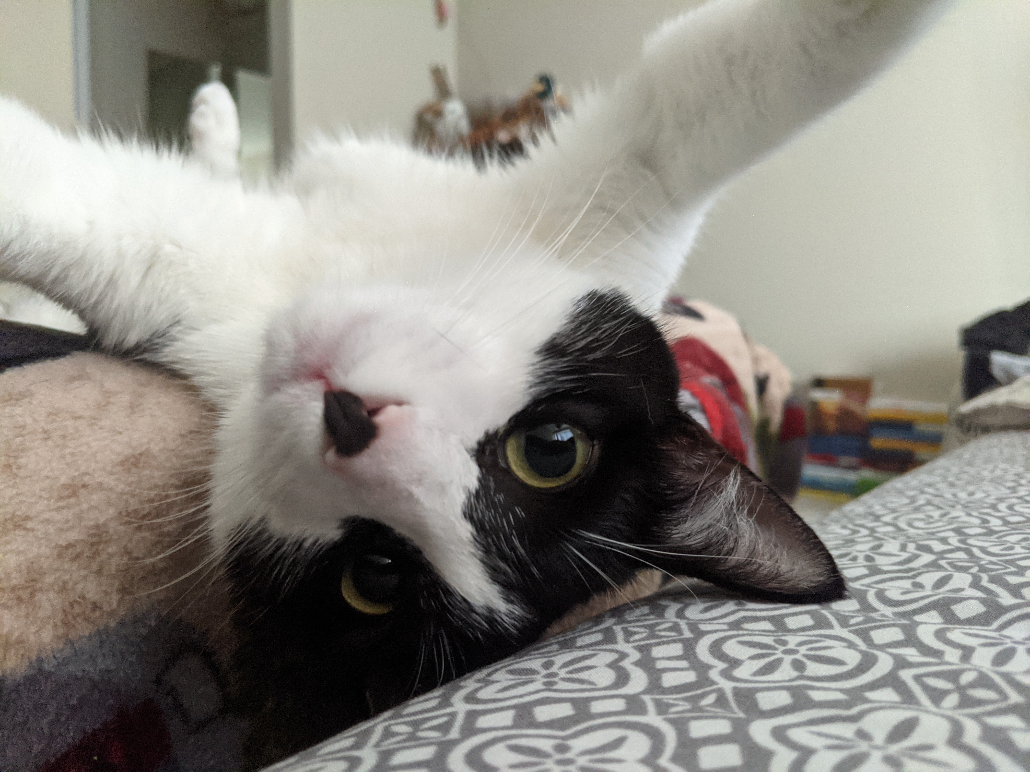 I never realized how hard it was to adopt because I had been applying to shelters and rescues for four months and I would never hear back from anyone! (apparently, everyone wanted to adopt pets last year because people were spending more time at home) I always knew that the only way I would get a pet again would be through adoption. The rescue introduced us to a black and white tuxedo kitten who was 10 weeks old. They mentioned that she was found in a sealed box with her siblings near the shelter and was very shy. She had been spending a few weeks in foster homes, getting used to people. We had a quick video call with the foster parents (pandemic meant we couldn’t meet her in person). On the call, we saw a small kitten who was trying to squirm out of her foster mom’s hold to go play and run around the house. She was energetic and loved zooming across the house. Just looking at her on video was enough for us to decide that she was that one. That was it, a week later we brought her home and she has been such an important part of my life since then.